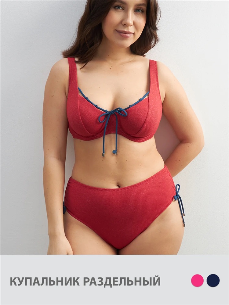 Раздельный купальник из фактурной микрофибры. Материал быстро высыхает, приятно ощущается на теле, устойчив к воздействию хлора и ультрафиолета. Полностью на подкладке, не просвечивает.