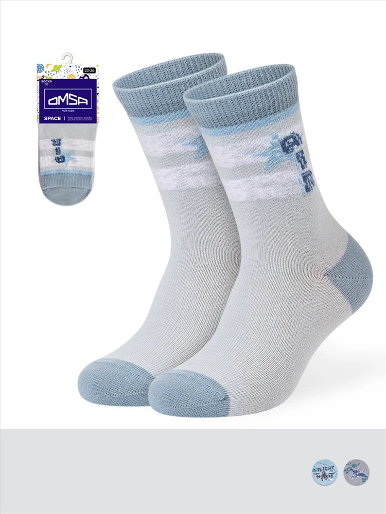 Носки детские для мальчиков CALZINO 23Р63 OMSA KIDS с рисунком «Самолёты» из натурального хлопка. Мягкий и дышащий материал, входящий в состав изделия, интенсивно впитывает влагу, поглощает пот, приятно ощущается на теле и подходит даже самой чувствительной кожи.
