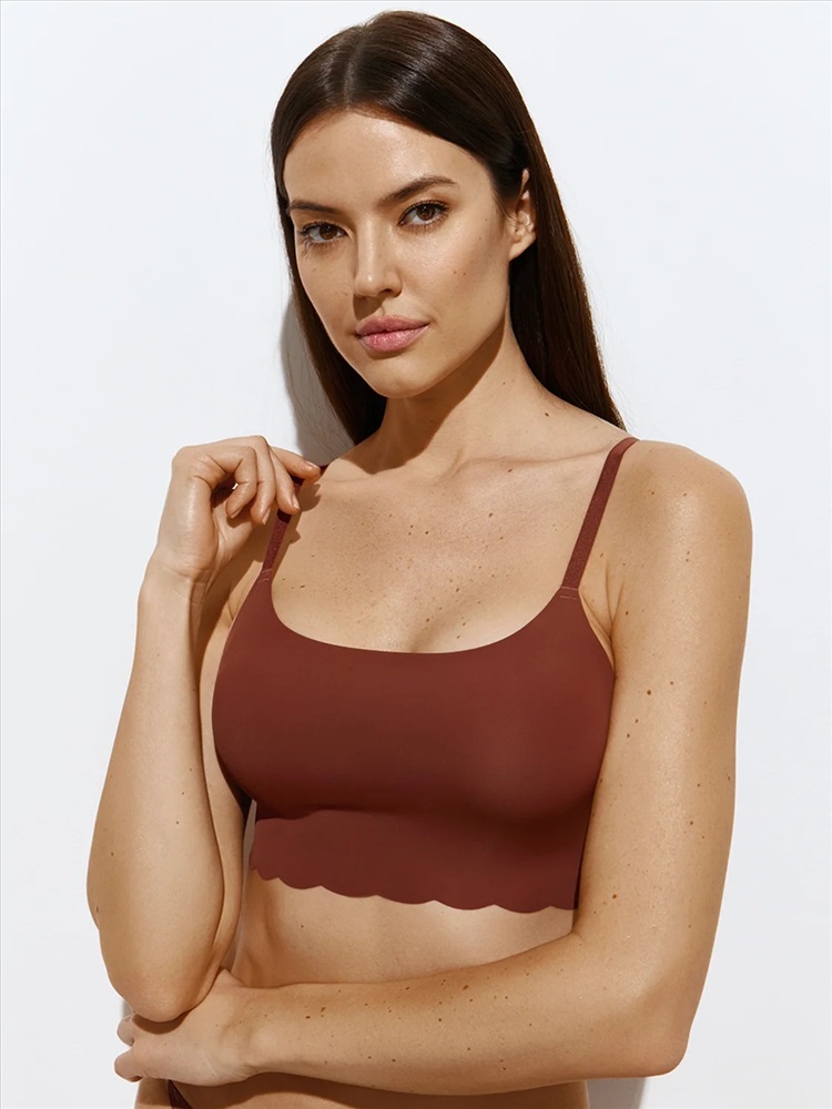 Стильный топ на тонких регулируемых бретелях со съемными мягкими формованными вкладышами. Эффектно подчеркивает грудь и придает ей изящную округлую форму.