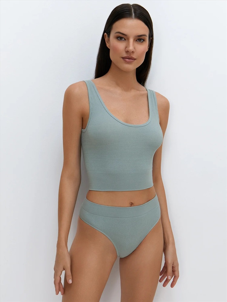 Бесшовные трусы-стринги с люрексом из микрофибры с вафельным плетением, с высокой линией талии. Материал в составе обладает нежной текстурой, приятно ощущается на теле, превосходно пропускает воздух, впитывает влагу, хорошо сохраняет форму и цвет. Отсутствие боковых швов, вывязанная хлопковая ластовица и широкая резинка создают оптимальный комфорт и обеспечивают свободу движений.