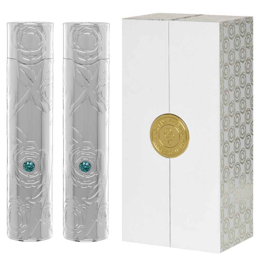 Серебристый флакон Silenda D Ecume украшен резным изображением розы — королевы цветов, которая является символом коллекции. Футляр с изысканной гравировкой изготовлен из полированного металла и декорирован сиреневым кристаллом Swarovski. В футляре находится флакон парфюмерной воды 50 мл. Набор также содержит бархатный мешочек, в котором очень удобно носить флакон с любимым парфюмом в сумочке.