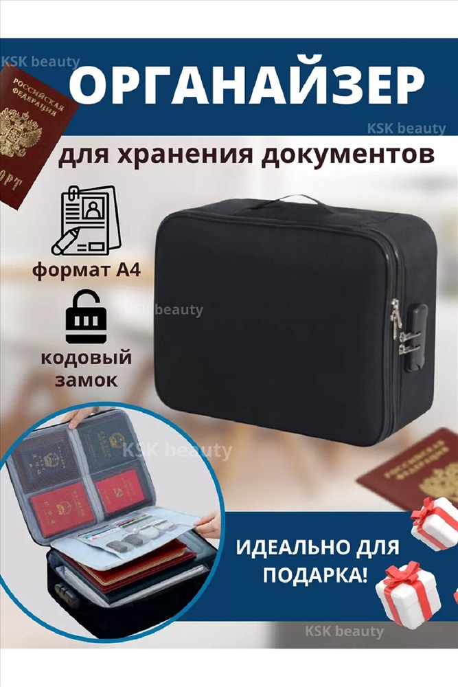ID товара: 978496 Сезон: Демисезон Органайзер для хранения документов это удобная и компактная сумка, которая обеспечивает безопасное хранение вещей в доме. Сумка для документов с замком изготовлена из прочной водоотталкивающей ткани, защищающей содержимое от пыли и грязи и превосходно впишется в любом офисе, Сумка под документы имеет качественную двойную молнию для быстрого доступа. Органайзер дорожный обладает прочным каркасом, который препятствует их деформации в путешествии. Органайзер офисный оснащен кодовым замком, который препятствует случайному открытию или взлому. Установите на замке комбинацию 000, затем нажмите и удерживайте фиксатор PUSH с двух сторон, далее с нажатой кнопкой установите новый код. Кейс для документов состоит из 4 отделений. Папка для документов выполнена из эластичной сетки. Комментарии к товару
