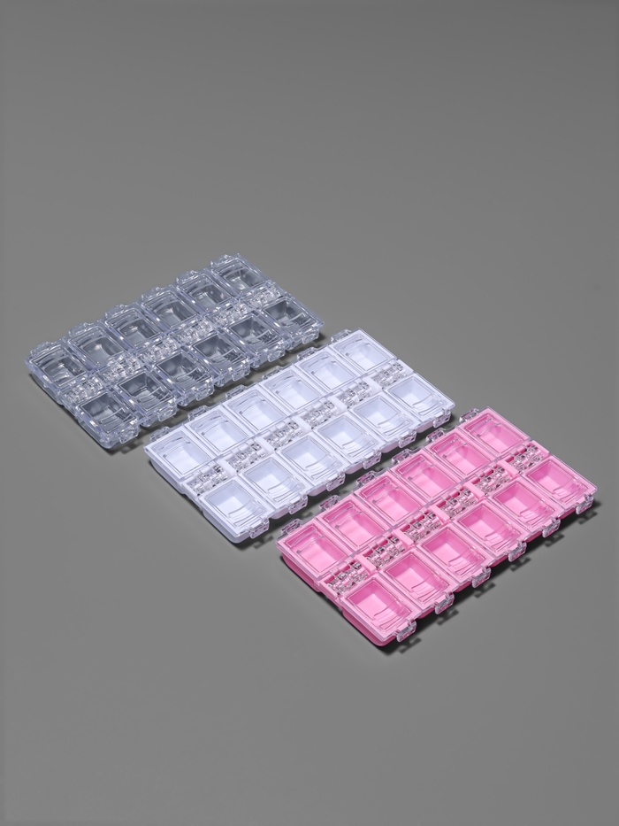 Этот компактный органайзер — настоящая находка для тех, кто ценит порядок и удобство. Благодаря 12 секциям он идеально подойдет для хранения мелочей, таких как декор для маникюра, стразы, фимо и другие аксессуары. Пластиковая конструкция обеспечивает лёгкость и долговечность, а плотная прозрачная крышка позволяет быстро находить нужные предметы, защищая их от высыпания и перемешивания.
