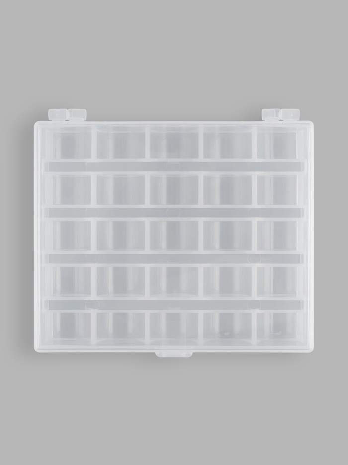 Для творческих людей Идеальное решение для швей, вышивальщиц и мастеров, работающих с нитками. Помогает содержать рабочее пространство организованным, экономя время на поиск нужного оттенка. Как использовать Распределите шпульки по ячейкам - по цветам, типам или толщине ниток. Закрытая конструкция предотвращает выпадение содержимого при переноске. Прозрачные стенки позволяют быстро находить нужные нитки, не открывая крышку. Комментарии к товару
