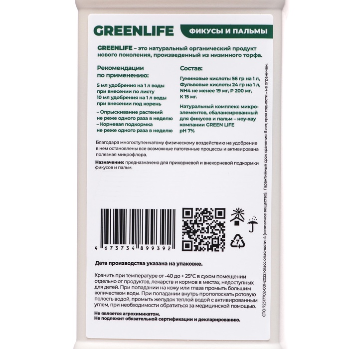 Габариты: 18 x 6,5 x 6,5 Доставка: Платная Страна: Россия В боксе: 20 шт Состав: См. на упаковке Материалы: см. на упаковке Фасовка: по 1 шт Индивидуальная упаковка: Без упаковки Сертификат: Не подлежит сертификации Вид средства: Удобрение Область применения: Для фикусов и пальм Происхождение: Органические (природное) Препаративная форма: Жидкость Вид: Удобрения Периоды применения: Лето, Весна Комплексные удобрения: Нет Класс опасности: 3 класс (умеренно опасные) Группы элементов: Макроудобрения Эффект: Увеличение урожая Вес/Объём: 1 л ""Органическое удобрение "Green Life" для фикусов и пальм"", объемом 0,5 л, представляет собой натуральное органическое удобрение, разработанное специально для обеспечения здорового роста и развития растений в домашних условиях. Продукт произведен из низинного торфа, что обеспечивает его высокую биологическую активность и уникальные свойства, способствующие ""улучшению почвы и стимуляции роста растений"". Органическое удобрение "Green Life" разработано с учетом потребностей фикусов и пальм, которые часто выращиваются в условиях ограниченного пространства в горшках. Уникальная формула продукта содержит оптимальное сочетание питательных веществ, необходимых для поддержания здоровья и красоты этих растений. Благодаря использованию натуральных компонентов, удобрение обеспечивает ""мягкое и постепенное питание растений, исключая риск переусложнения почвы и ожогов корней.""Одним из ключевых преимуществ органического удобрения "Green Life" является его ""экологическая безопасность"". Продукт ""не содержит синтетических добавок и химических удобрений"", что делает его идеальным выбором для любителей экологически чистого садоводства и заботы о природе. Благодаря использованию натуральных компонентов, удобрение не наносит вреда окружающей среде и не загрязняет почву, что особенно важно при выращивании растений в закрытых помещениях. ""Применение"" органического удобрения "Green Life" для фикусов и пальм позволяет достичь высоких результатов в выращивании этих растений. Регулярное использование продукта способствует улучшению структуры почвы, повышению ее плодородия и стимуляции активного роста корневой системы. Это в свою очередь способствует улучшению общего состояния растений, ""укреплению их иммунитета и повышению устойчивости к стрессовым условиям"". Органическое удобрение "Green Life" представляет собой надежный помощник в уходе за фикусами и пальмами, обеспечивая им все необходимые питательные вещества для здорового роста и развития. Продукт легко дозируется и применяется, что делает его удобным в использовании даже для начинающих садоводов. Благодаря своей эффективности и безопасности, органическое удобрение "Green Life" станет незаменимым помощником для всех, кто ценит здоровье своих растений и заботится о сохранении природы. Комментарии к товару