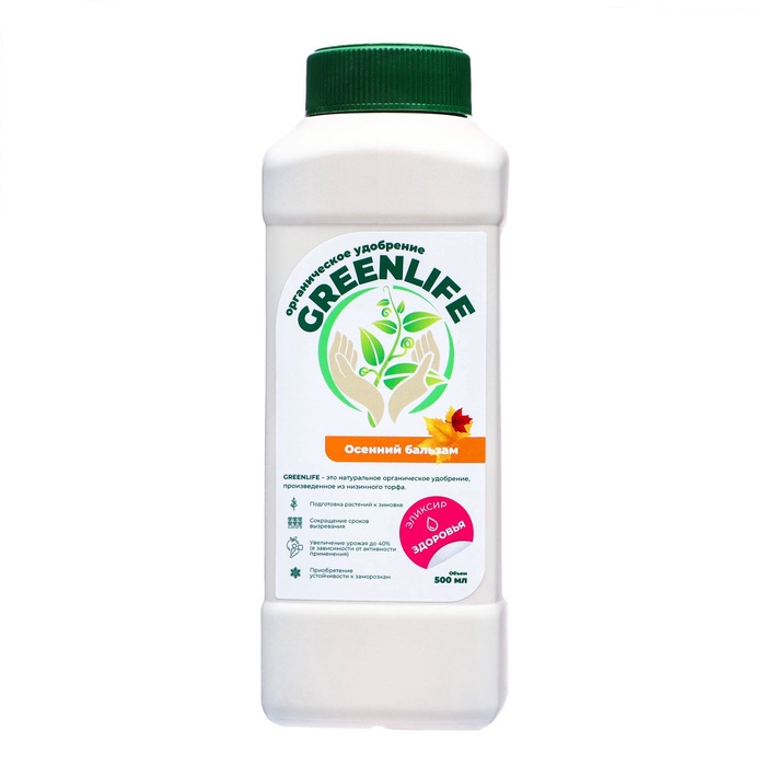 Органическое удобрение "Green Life" осенний бальзам, 0,5 л, представляет собой эффективный и ""экологически безопасный продукт"", который способствует улучшению качества почвы, ""стимуляции роста растений и повышению урожайности"". Регулярное применение этого удобрения поможет обеспечить здоровый и обильный урожай, сохраняя при этом экологическое равновесие.