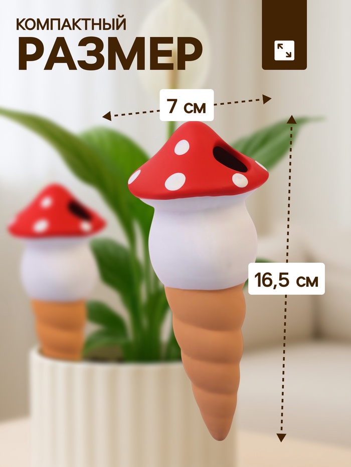 Ороситель «Грибочек» — это стильный и практичный помощник для автоматического полива комнатных растений. Набор из четырех керамических оросителей высотой 16,5 см обеспечит равномерное увлажнение почвы, сохраняя ваши цветы здоровыми даже в ваше отсутствие.