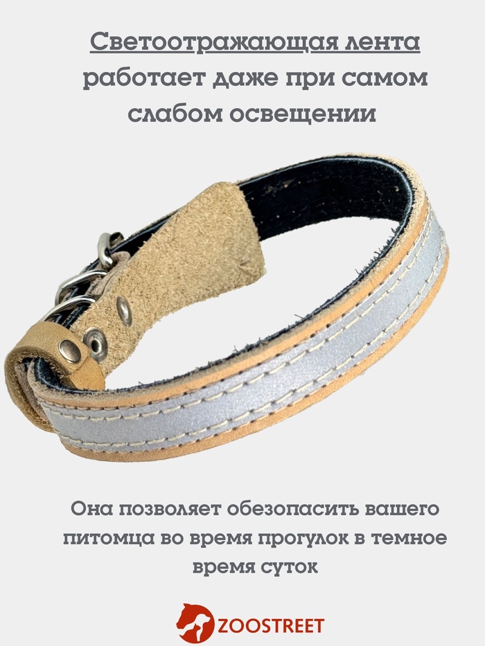 Габариты: 38 x 3 x 2 Страна: Россия В боксе: 160 шт Состав: Кожа Материалы: кожа Фасовка: по 1 шт Индивидуальная упаковка: Без упаковки Сертификат: Не подлежит сертификации Цвет: Бежевый Ширина, см: 3,5 Вид застёжки: Пряжка Рисунок: Нет Обхват шеи, см: 27 - 33 Вид ошейника: Повседневный Ошейник, в котором комфорт встречается с безопасностью — для уверенных прогулок днём и вечером. Кожаный ошейник с подкладом и светоотражающей лентой выполнен в универсальном бежевом цвете. Ширина 3,5 см и регулируемый обхват шеи 27–33 см делают его подходящим для мелких пород. Особенности: