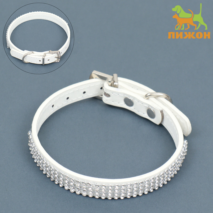 Стильный, модный ошейник со стразами из искусственной кожи и с креплением для поводка для собак. Сделает вашего питомца более привлекательным на прогулке.
