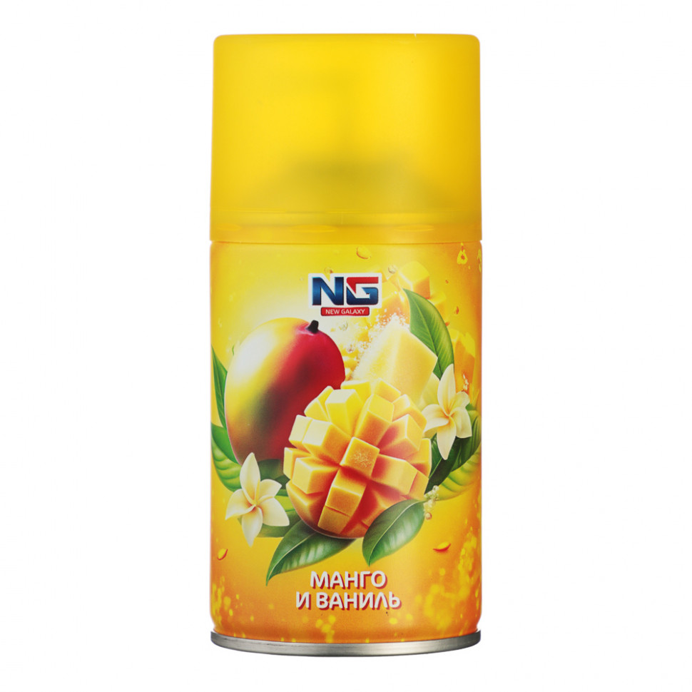 Освежитель воздуха для дома NEW GALAXY Автоматик 250 мл, Манго и ваниль – это свежий и приятный аромат, который наполнит ваш дом атмосферой тропического уюта. Освежитель с изысканным сочетанием сладких нот манго и нежного ванильного шлейфа создает ощущение комфорта и расслабления. Объем 250 мл гарантирует экономичный расход, а компактный дизайн делает его удобным для использования в любом помещении. Комментарии к товару