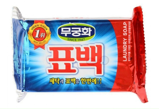 Mukunghwa Отбеливающее и пятновыводящее хозяйственное мыло Bleaching Laundry Soap, 230 г Мыло эффективно отстирывает разнообразные пятна на цветных тканях (пыль, земля, кровь, натуральные соки, жирные пятна) за счёт активного компонента, входящего в состав, а также обладает хорошим отбеливающим эффектом, убирает желтизну и черноту с цветных тканей, возвращает им яркость. Содержит оптический отбеливатель, который не повреждает цвета и структуру тканей. Специальные оптические микрогранулы пропитывают волокна, отражаются в дневном свете и придают яркость и насыщенность одежде. Мыло дарит приятный аромат свежести и цитруса! Отлично дезодорирует, продлевает чистоту и свежесть белья. Состав: Комментарии к товару