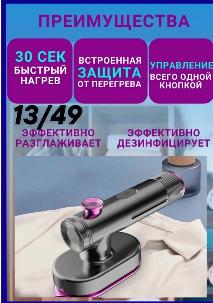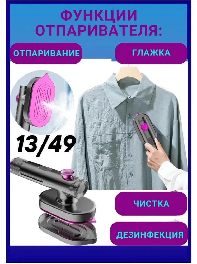 Электрический портативный утюг для сухой и влажной глажки одежды. Дорожный утюг для одежды обладает функцией глажки вещей паром, что позволяет эффективно удалять морщины и освежать вашу одежду без необходимости использования обычного утюга и гладильной доски. Беспроводной утюжок обеспечивает максимальную мобильность и удобство в использовании
