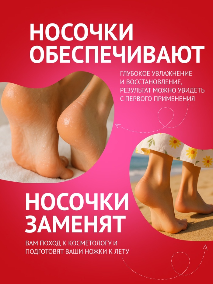 Маска для ног удаляет ороговевшие клетки кожи и мозоли, делает кожу гладкой и мягкой всего за 1-2 недели!