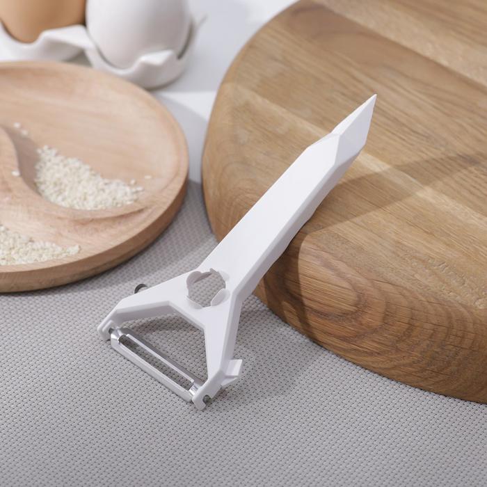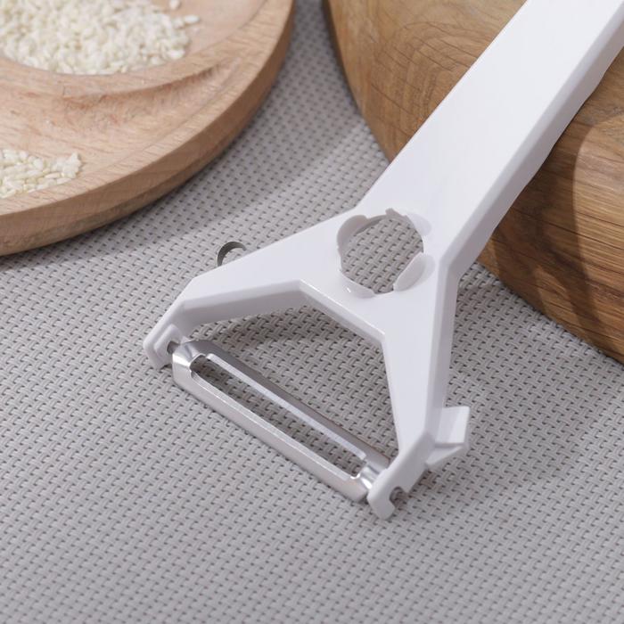 Габариты: 6 x 14 x 1 Страна: Россия В боксе: 200 шт Состав: Пластик Материалы: пластик Фасовка: по 1 шт Индивидуальная упаковка: Без упаковки Сертификат: СТР Набор: Нет Материал ручки: Пластик Материал: Пластик Можно мыть в посудомоечной машине: Да Материал лезвия: Металл Тип: Горизонтальная Ручная овощечистка идеально подходит для снятия кожуры с различных фруктов и овощей. Рабочая сторона изделия с двумя лезвиями изготовлена из нержавеющей стали. Прочный и устойчивый к коррозии сплав долго остается острым и не теряет своей функциональности при длительном использовании. Кроме самого лезвия, на боку овощечистки есть специальный зубец для удаления глазков из картошки и вырезания бороздок на других овощах и фруктах, что делает ее многофункциональной. Для того, чтобы поддерживать чистоту овощечистки, необходимо после каждого использования промывать ее проточной теплой водой и бережно протирать железные лезвия прибора. Комментарии к товару