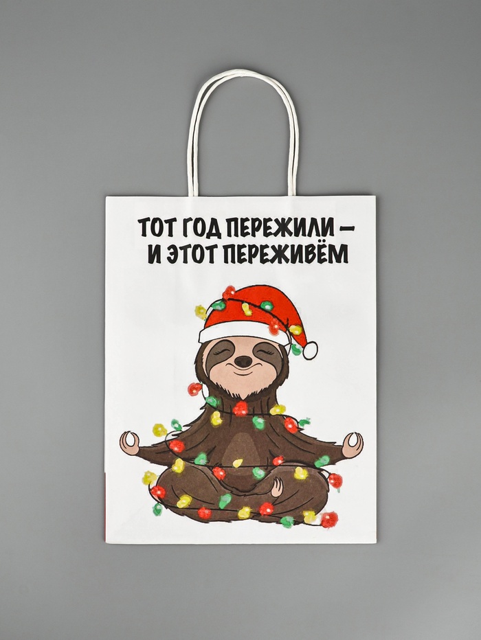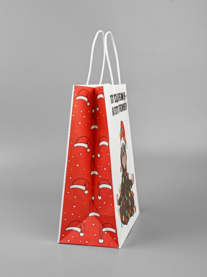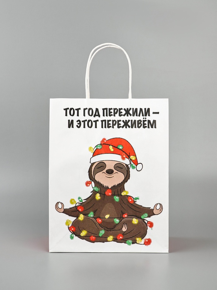 Крафтовый пакет с новогодним приколом — это идеальный выбор для тех, кто хочет добавить нотку юмора и оригинальности в праздничную упаковку подарков.