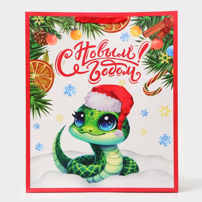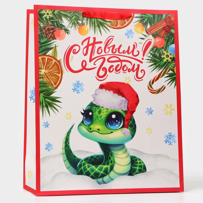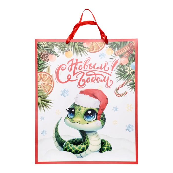 Пакет ламинированный новогодний вертикальный размером XL 40 × 49 × 19 см — идеальный выбор для упаковки новогодних подарков!