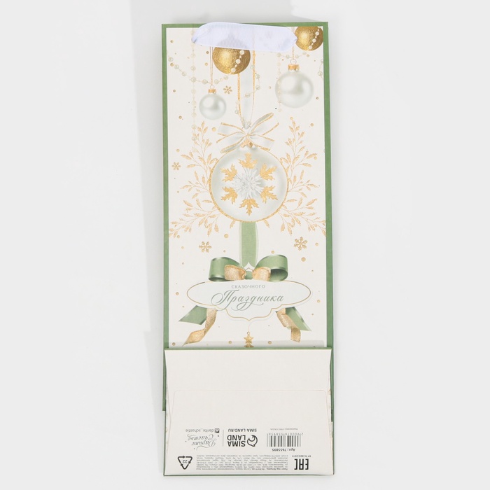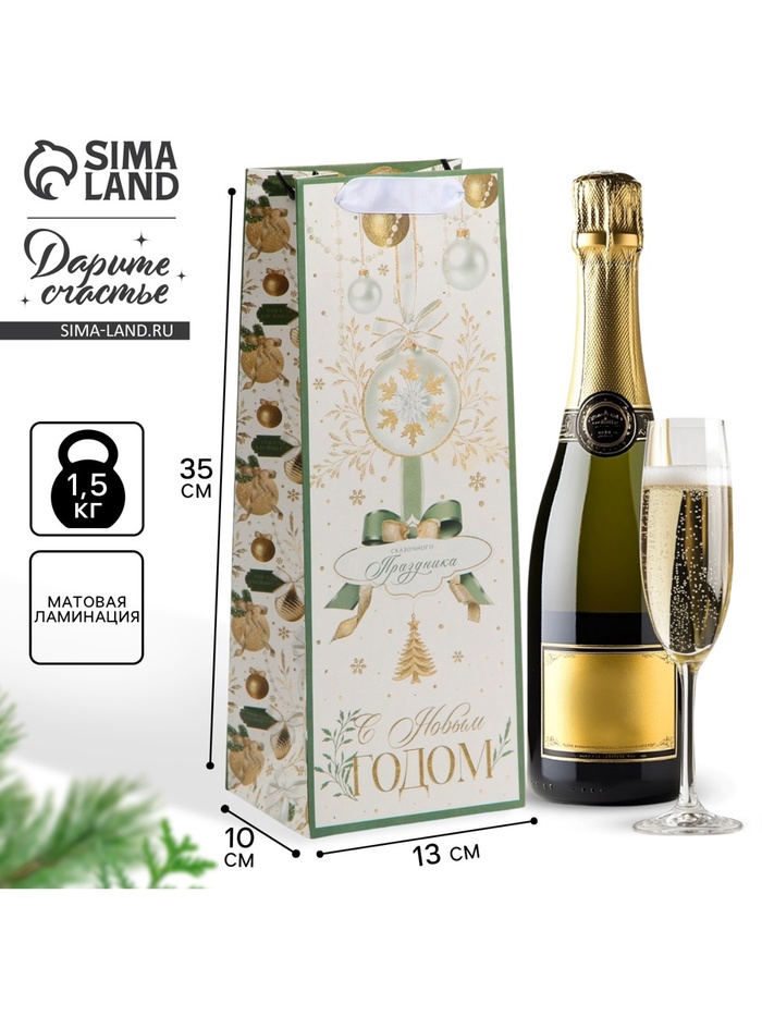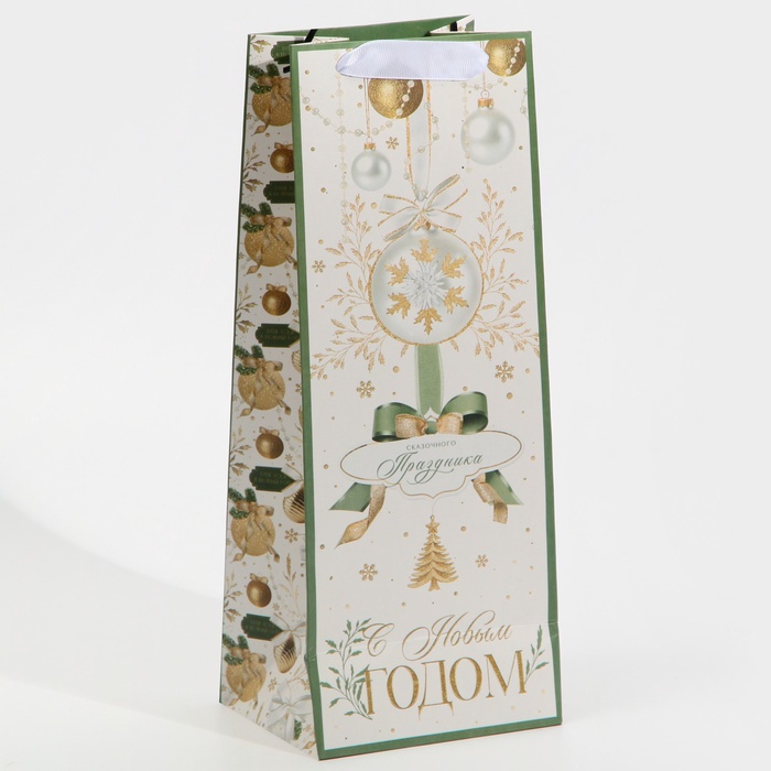 Производитель: Дарите Счастье Габариты: 35 x 13 x 0,3 Страна: Китай В боксе: 300 шт Состав: Бумага Материалы: бумага Фасовка: по 1 шт Индивидуальная упаковка: Пакет Габариты товара: 13 см × 36 см × 10 см Сертификат: ЕАС Цвет: Белый Для кого: Унисекс Плотность, г/м²: 210 Тематика: Новогодняя Символ года: Нет Тематика праздника: Новый год Материал: Бумага Отделка пакета: Без отделки Вид ручки: Ручка-лента Особенности: Под бутылку Дизайн: С рисунком, надписью
