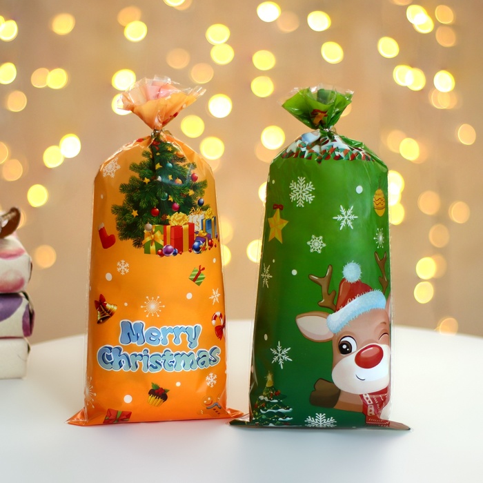 - Яркие новогодние принты: Каждый пакет украшен тематическими рисунками — не требует дополнительного декора. Создаёт законченный праздничный образ подарка.