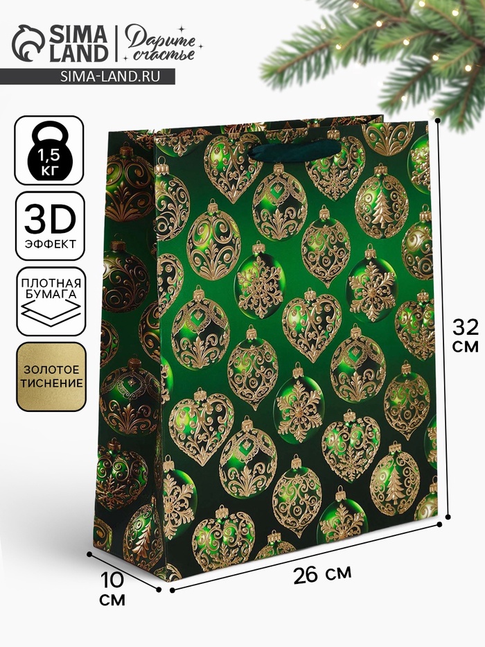 Производитель: Дарите Счастье Габариты: 0,2 x 26 x 32 Страна: Китай В боксе: 150 шт Состав: Картон Материалы: картон Фасовка: по 1 шт Индивидуальная упаковка: Пакет Габариты товара: 32 см × 26 см × 10 см Сертификат: ЕАС Цвет: Золотистый, Зелёный Для кого: Унисекс Плотность, г/м²: 190 Тематика: Новогодняя Тематика праздника: Новый год Отделка пакета: Конгрев, Тиснение Вид ручки: Ручка-лента Дизайн: С рисунком, надписью