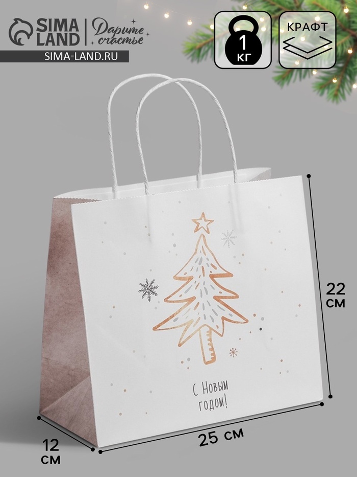 Пакет подарочный новогодний крафт «С Новым годом», 25×22×12 см