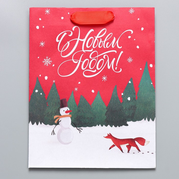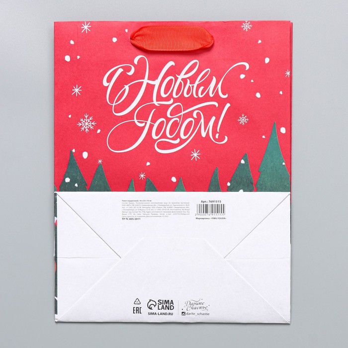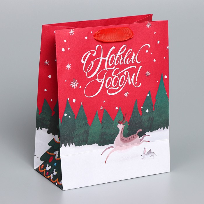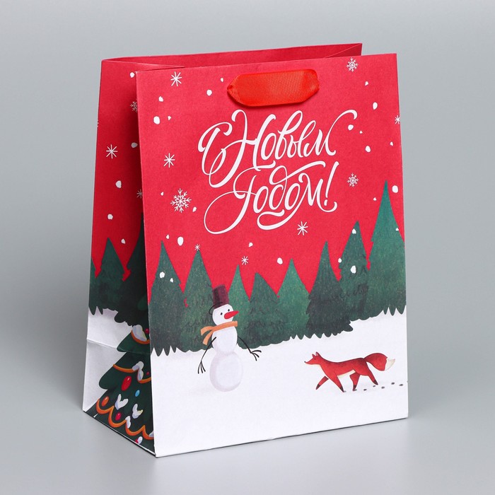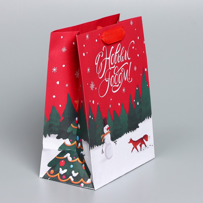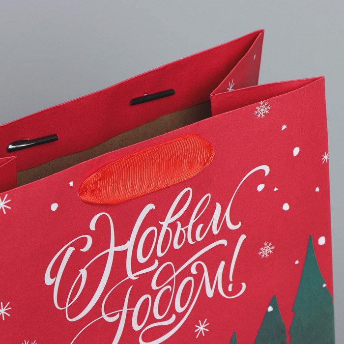 Пакет подарочный новогодний крафтовый New, MS 18×23×10 см
