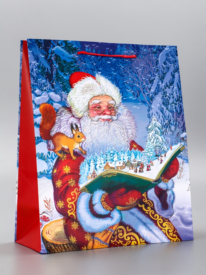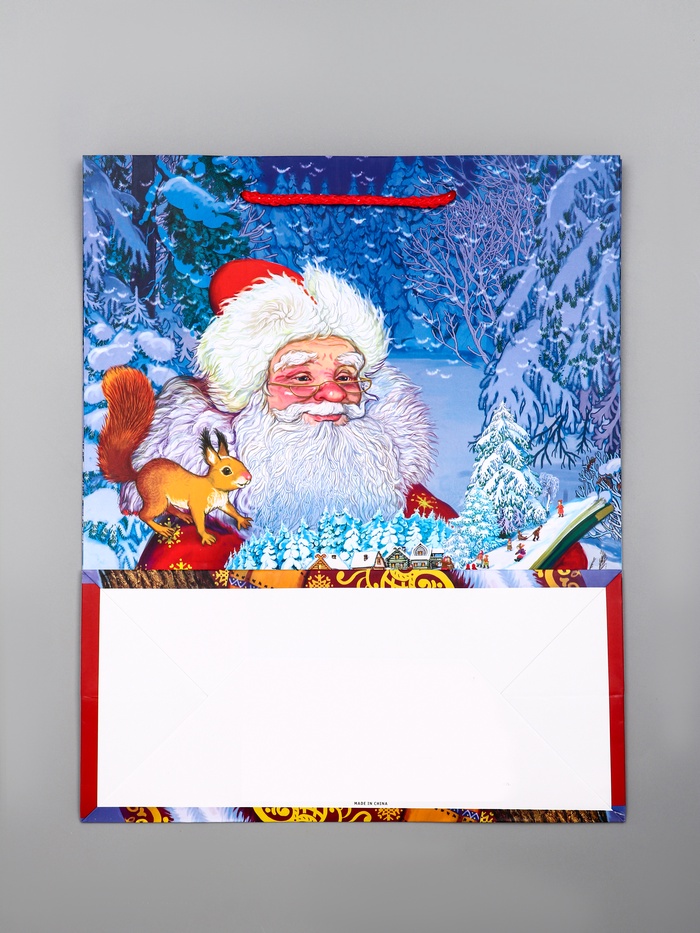 Встречайте праздник в стильном зимнем дизайне! Новогодний подарочный пакет «Дед Мороз» — это прочная и красивая упаковка для ваших сюрпризов. Классический синий фон и изображение главного волшебника создают сразу нужное настроение.