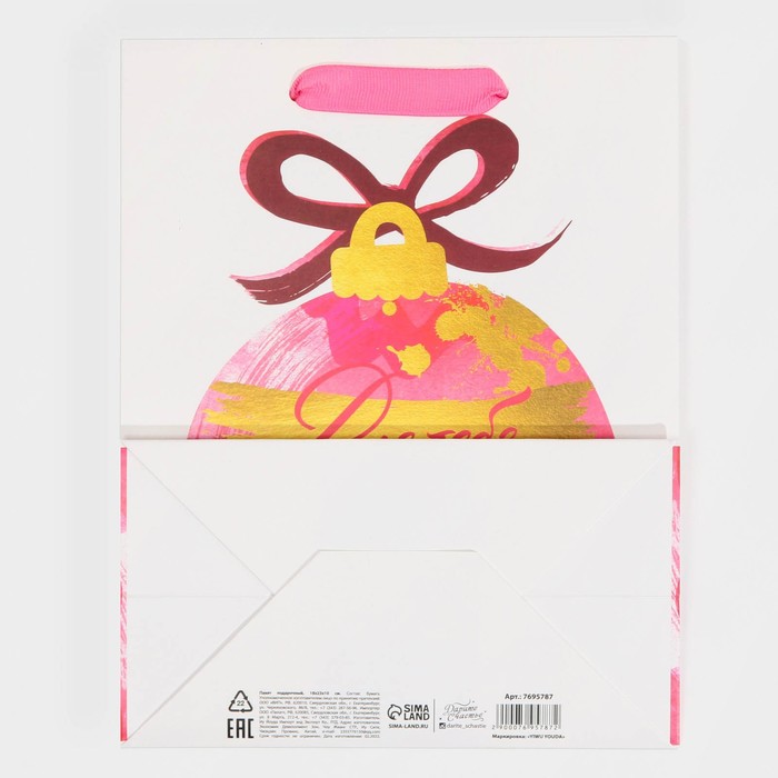 Производитель: Дарите Счастье Габариты: 0,3 x 18 x 23 Страна: Китай В боксе: 260 шт Состав: Бумага Материалы: бумага Фасовка: по 1 шт Индивидуальная упаковка: Пакет Габариты товара: 18 см × 23 см × 10 см Сертификат: ЕАС Цвет: Белый Для кого: Для девочки, Для женщины Плотность, г/м²: 190 Допустимый вес вложения, г: 700 Тематика: Шары, Новогодняя Символ года: Нет Тематика праздника: Новый год Материал: Бумага Отделка пакета: Ламинация Вид ручки: Ручка-лента Дизайн: С рисунком, надписью