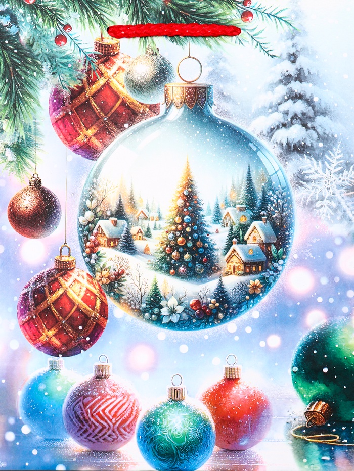 Идеальный выбор для традиционных подарков: Этот пакет особенно подходит для презентов, которые дарят в рамках сложившихся семейных традиций. Объединение двух символов праздника напоминает о том, как важно сохранять привычные ритуалы и создавать новогоднее настроение. «Ёлка в шаре» — это упаковка для тех, кто ценит классические праздничные атрибуты в современном исполнении.