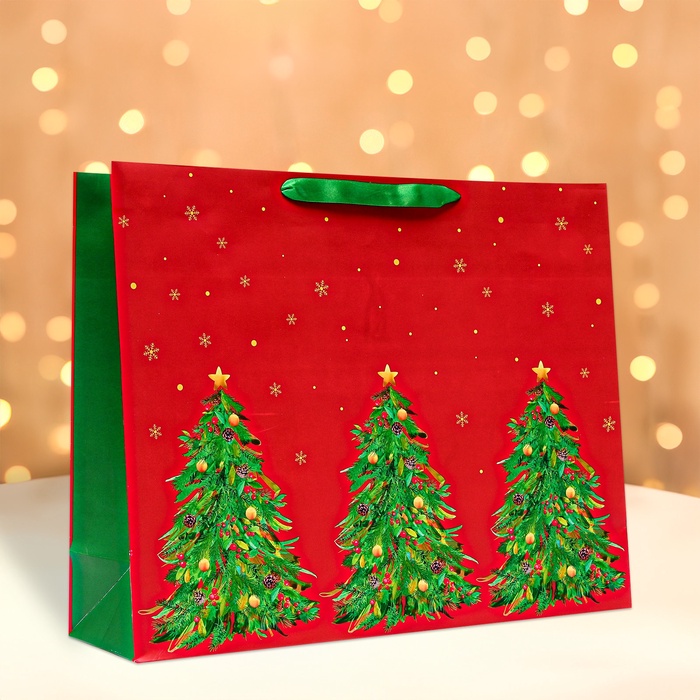 Пакет подарочный новогодний ламинированный «Ёлки», 50×40×15 см