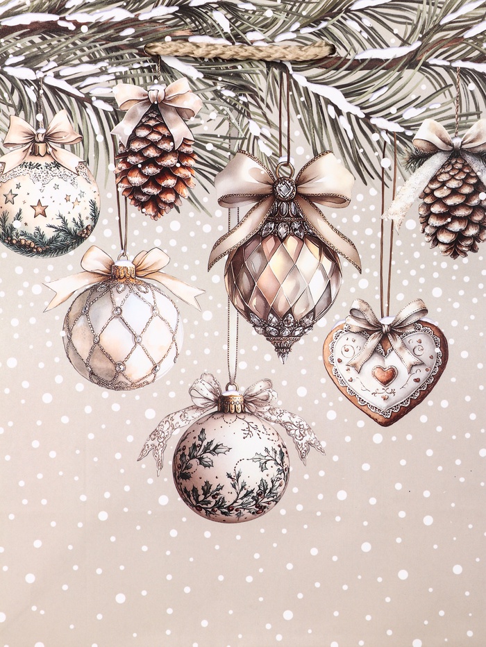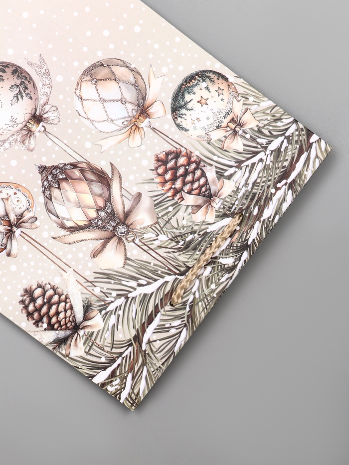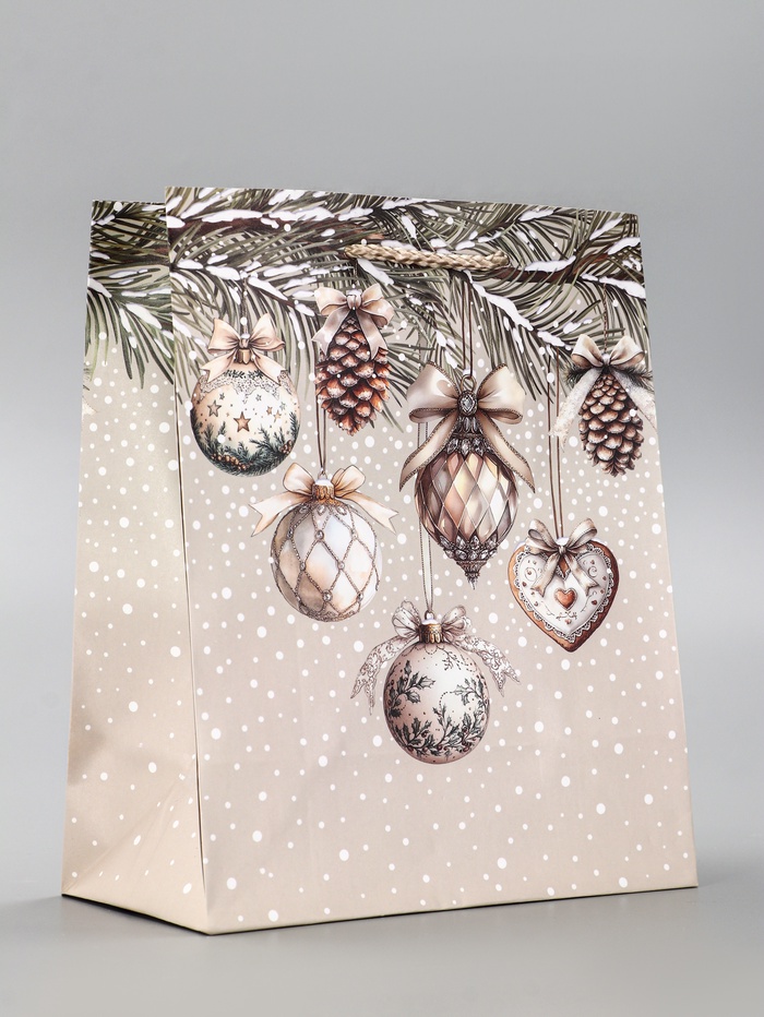 Идеальное решение для праздника: Этот пакет создает настроение еще до вручения подарка. Вместительный размер подходит для упаковки одежды, косметики, сладостей, книг или игрушек. Он не требует дополнительной оберточной бумаги — просто поместите презент внутрь, и он готов к вручению. Подарочный пакет «Новогодние игрушки» — прекрасный выбор для тех, кто ценит элегантность и внимание к деталям. Подарите своим близким не только вещь, но и целую историю в красивой упаковке! Комментарии к товару