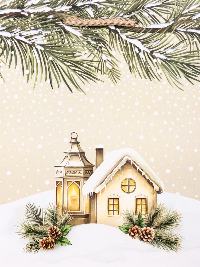 Упакуйте подарок в самую уютную новогоднюю историю! Подарочный пакет «Новогодний дом» — это не просто упаковка, а часть праздничной атмосферы. Иллюстрация с уютным домом в зимнем убранстве создает ощущение тепла и домашнего уюта, которое так ценится в зимние праздники.