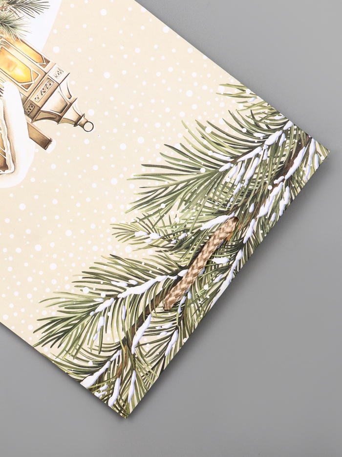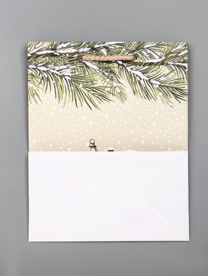 Завершающий штрих к подарку: Этот пакет сам становится частью праздничного декора. Его можно поставить под елку или использовать как элемент новогоднего оформления комнаты. Универсальный бежевый фон и классический зимний сюжет делают его уместным для подарка человеку любого возраста и пола. Подарочный пакет «Новогодний дом» — это простой способ добавить вашему презенту ощущение домашнего тепла и праздничного волшебства.