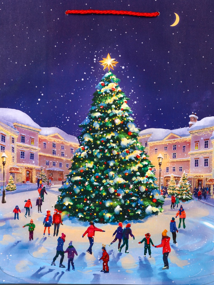 Завершите образ новогоднего подарка! Праздничный пакет с дизайном «Новогодний каток» — это ламинированная упаковка с зимней тематикой. Сочетание красного и синего цветов создает яркий контраст, а сюжет с катком передает атмосферу активного зимнего отдыха.