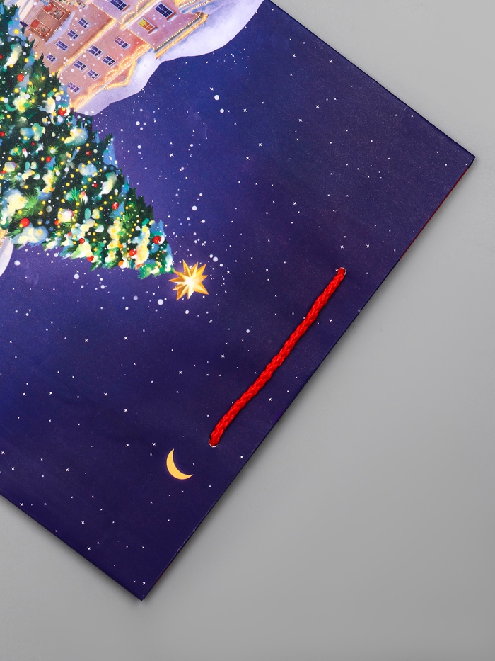 - Прочное ламинирование: Плотность бумаги 180 г/м² с ламинированным покрытием обеспечивает защиту от влаги и механических повреждений. Пакет сохраняет форму даже с достаточно тяжелыми подарками.