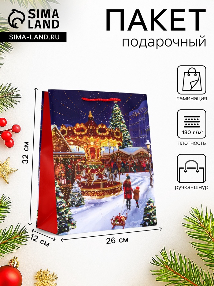 Завершенный образ подарка: Этот пакет заменяет традиционную упаковочную бумагу — ваш презент будет выглядеть продуманно и празднично. Ламинированная поверхность сохраняет яркость красок, а прочная конструкция выдерживает вес даже объемных подарков. Просто поместите презент внутрь — и он готов создать новогоднее настроение! Комментарии к товару