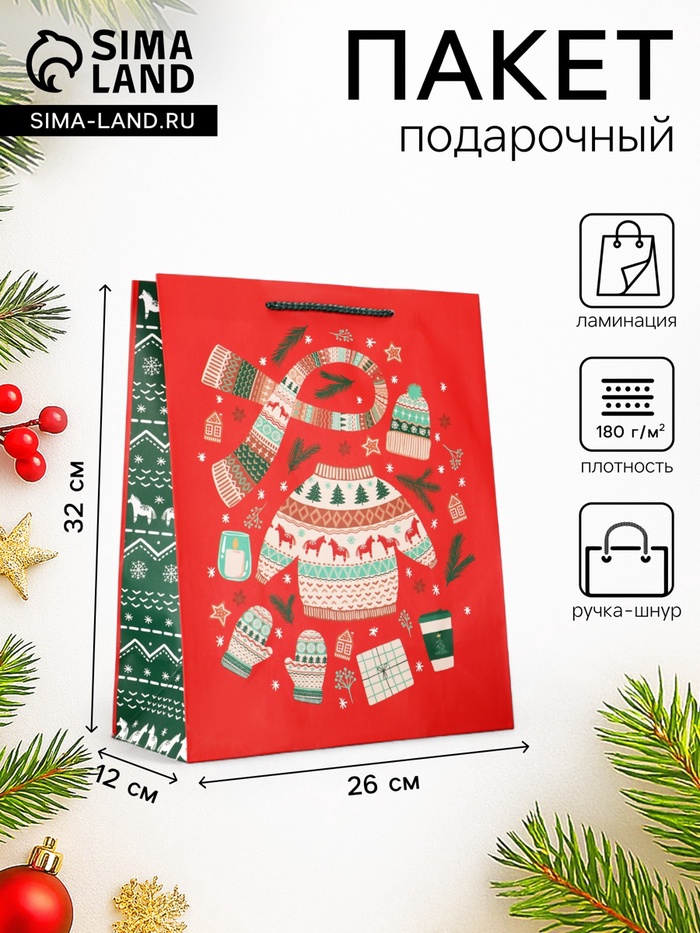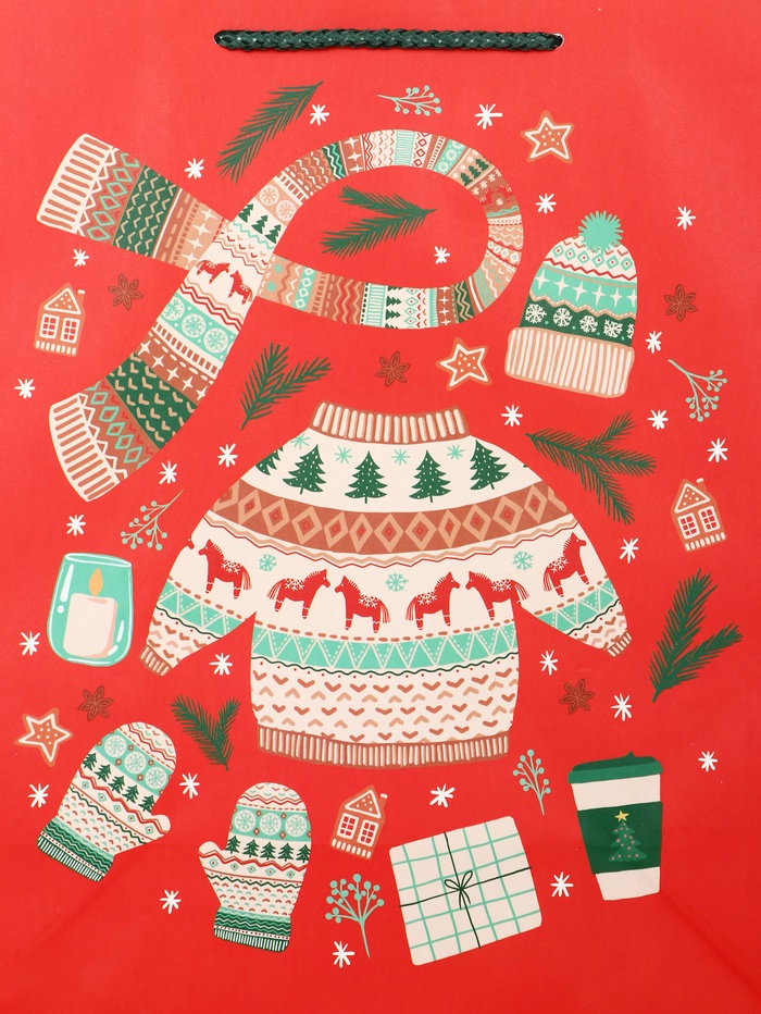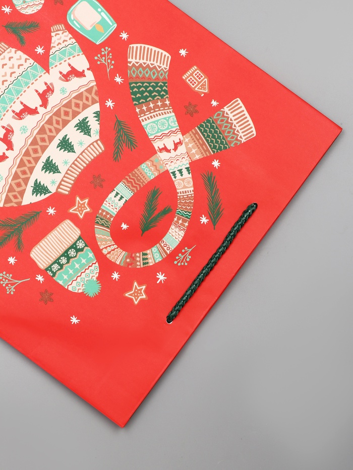 Базовое решение для новогодних подарков: Этот пакет подходит для упаковки большинства стандартных презентов. Простой и узнаваемый дизайн делает его универсальным выбором для тех, кто ценит классику и не хочет перегружать упаковку лишними деталями. «Новый Год» — это упаковка, которая говорит сама за себя. Комментарии к товару