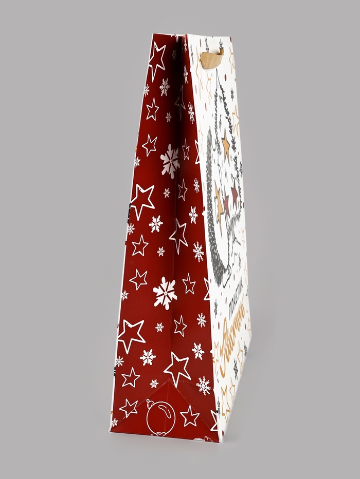 Стильный новогодний пакет с ламинацией используют как упаковку для подарка. Благодаря своему оригинальному дизайну и привлекательному внешнему виду он создаст праздничное настроение получателю и не оставит его равнодушным.
