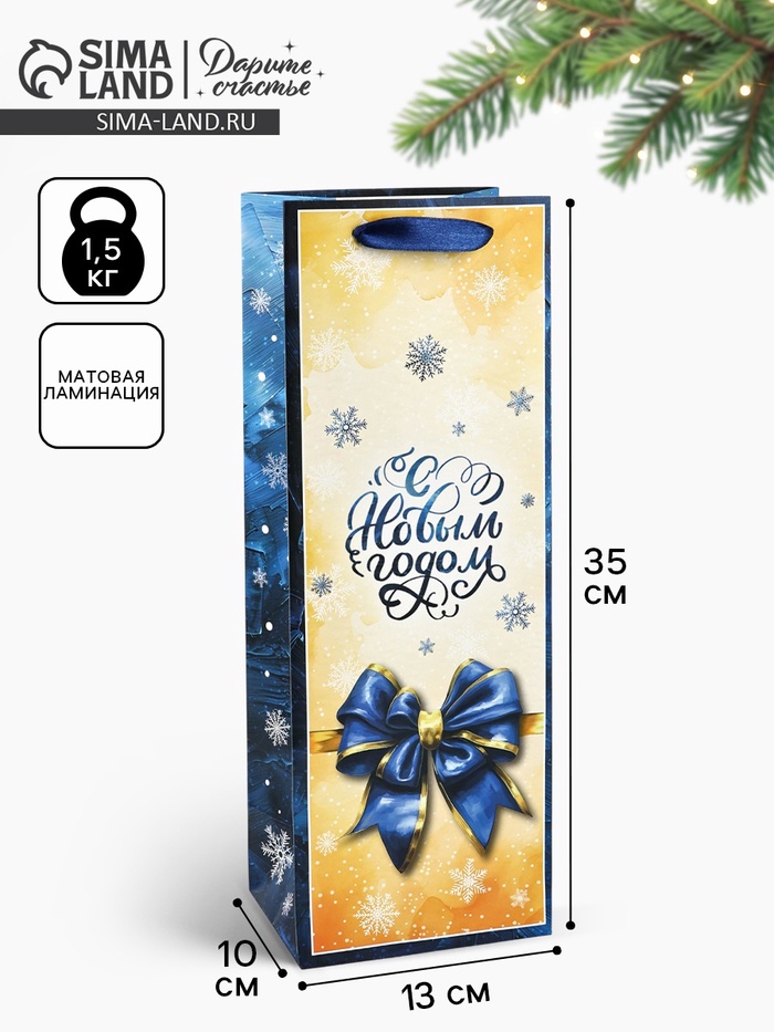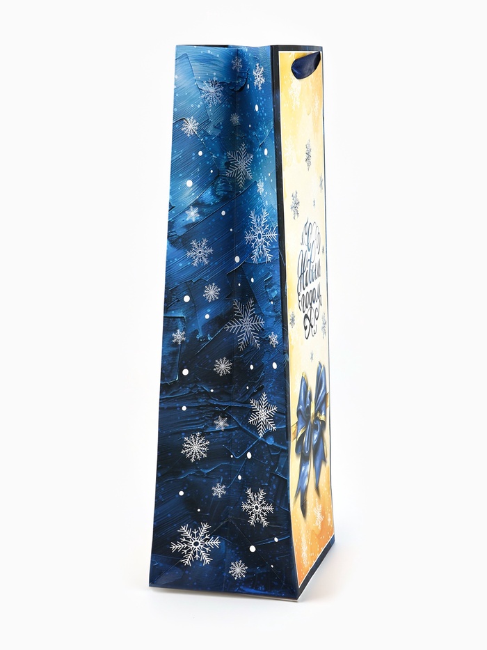 Габариты: 13 x 36 x 0,4 Страна: Китай В боксе: 200 шт Состав: Бумага, картон Материалы: бумага, картон Фасовка: по 1 шт Индивидуальная упаковка: Пакет Сертификат: ЕАС Цвет: Синий, Золотистый Для кого: Унисекс Плотность, г/м²: 210 Тематика: Новогодняя Вид упаковки: Пакет подарочный, Пакет бумажный Рисунок: Да Тематика праздника: Новый год Материал: Картон, Бумага Отделка пакета: Декор Расширение: Боковая складка Вид ручки: Ручка-лента Форма пакета: Вертикальный Особенности: Под бутылку Дизайн: С рисунком, надписью Подарочный пакет новогодний — идеальный выбор для упаковки бутылки.
