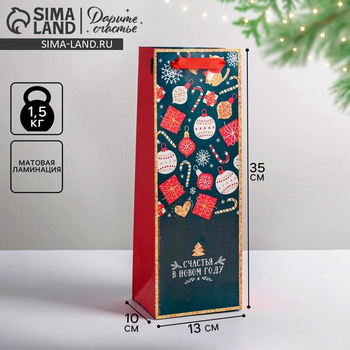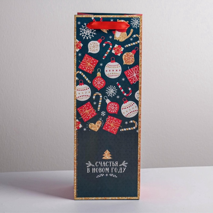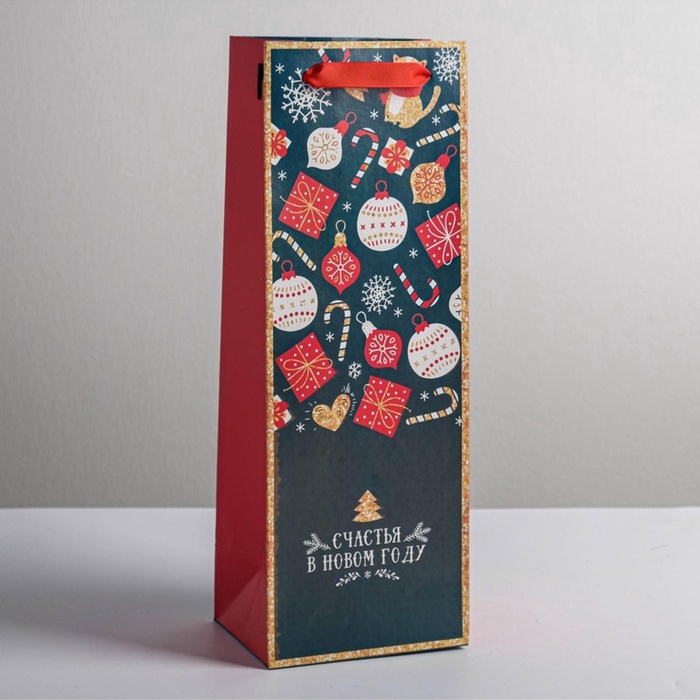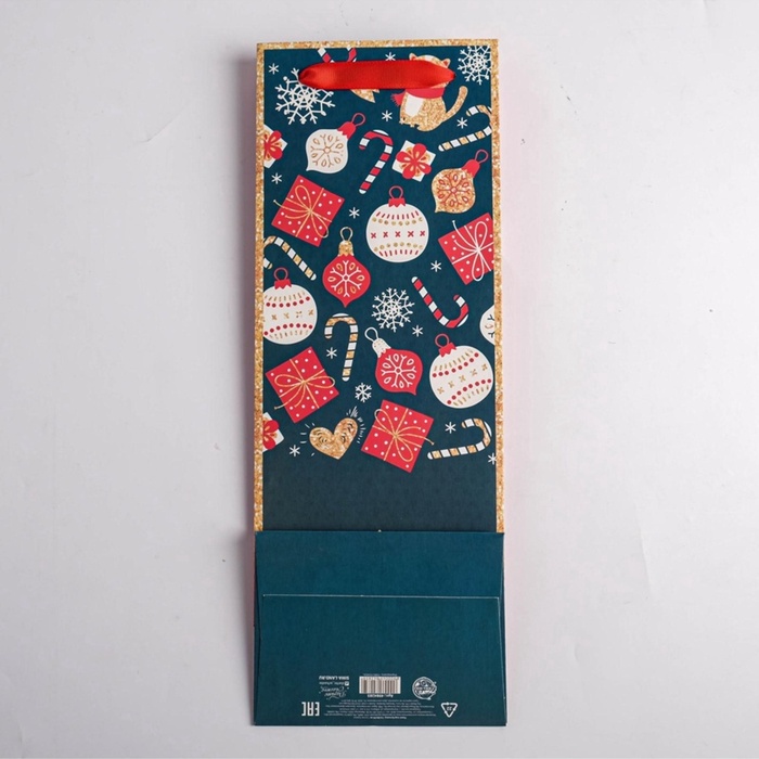 Производитель: Дарите Счастье Габариты: 13 x 35 x 0,4 Страна: Китай В боксе: 300 шт Состав: Бумага Материалы: бумага Фасовка: по 1 шт Индивидуальная упаковка: Пакет Габариты товара: 13 см × 36 см × 10 см Сертификат: ЕАС Цвет: Зелёный Для кого: Унисекс Плотность, г/м²: 210 Тематика: Новогодняя Символ года: Нет Тематика праздника: Новый год Материал: Бумага Отделка пакета: Без отделки Вид ручки: Ручка-лента Особенности: Под бутылку Дизайн: С рисунком, надписью