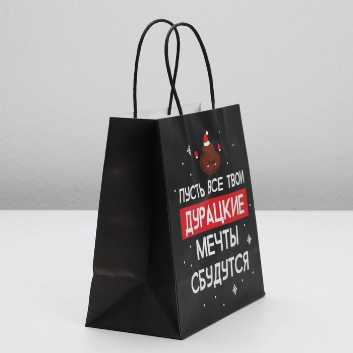 Производитель: Дарите Счастье Габариты: 30 x 22 x 0,3 Страна: Китай В боксе: 130 шт Состав: Бумага Материалы: бумага Фасовка: по 1 шт Индивидуальная упаковка: Пакет Габариты товара: 22 см × 11 см × 22 см Сертификат: ЕАС Цвет: Чёрный Для кого: Унисекс Плотность, г/м²: 150 Допустимый вес вложения, г: 1000 Тематика: Новогодняя, Приколы Символ года: Нет Тематика праздника: Новый год Материал: Бумага Отделка пакета: Крафт Вид ручки: Крученый шпагат Особенности: Без особенностей Дизайн: С рисунком, надписью