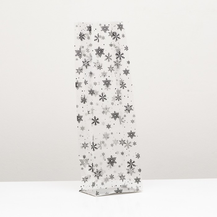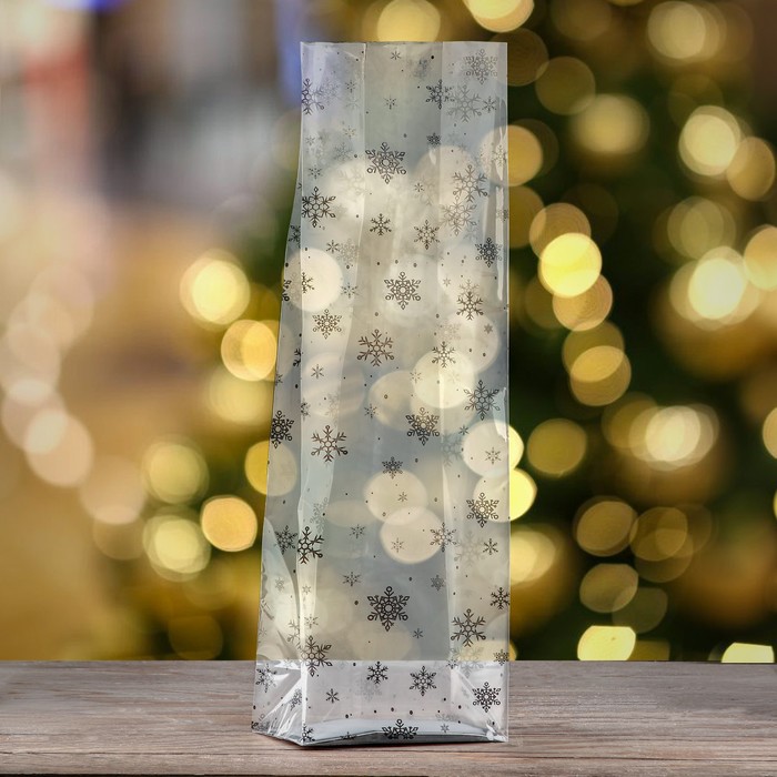 Стильная зимняя упаковка для особенных подарков! Серебристый подарочный пакет с жестким дном 11×17×55 см — создает эффектную презентацию новогодних сюрпризов. Изысканный дизайн с серебристыми снежинками превращает обычную упаковку в праздничный аксессуар.