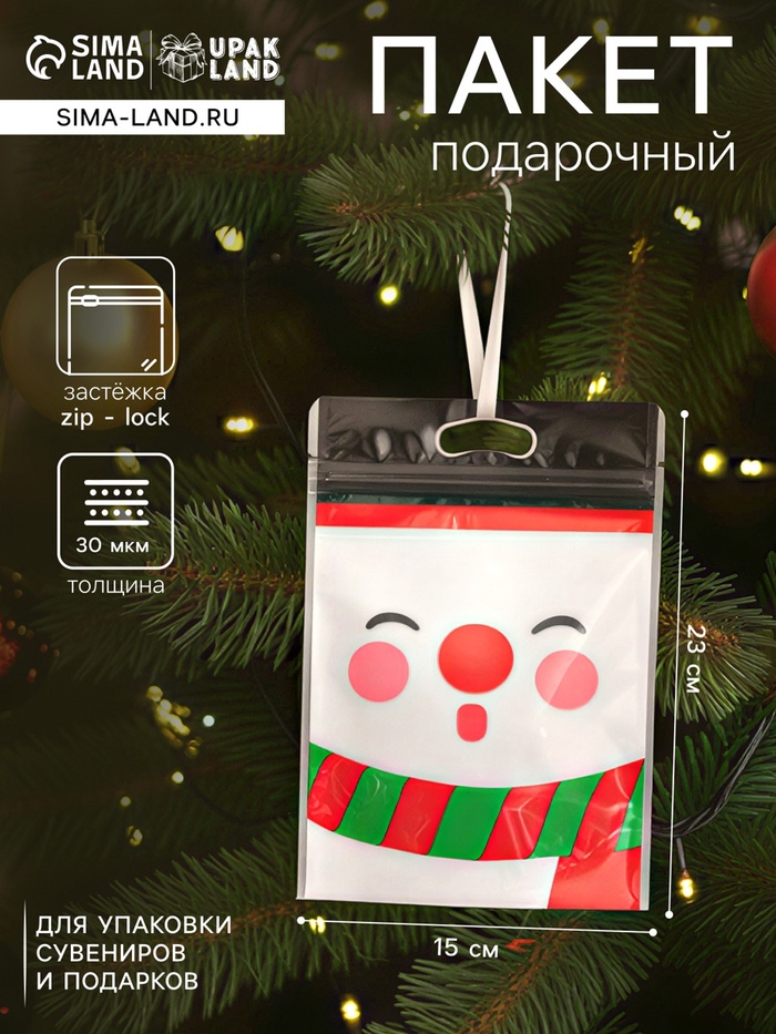 Зимнее настроение в удобной упаковке! Пакет с застёжкой «Снеговик» (15×23 см) — праздничное решение для новогодних подарков. Красный дизайн с весёлым снеговиком создаёт атмосферу зимнего волшебства.
