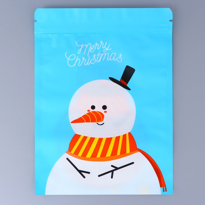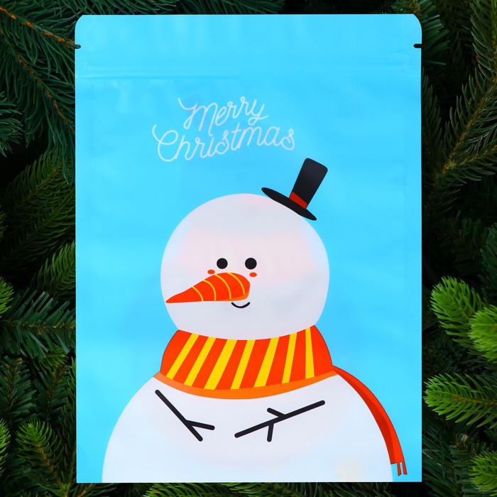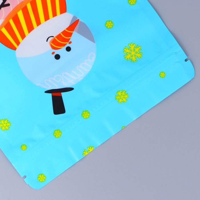 Зимнее очарование в каждой детали! Пакет с застёжкой «Снеговик в шарфе» (16×21,5 см) — стильная новогодняя упаковка с нежным голубым оттенком. Уютный дизайн с забавным снеговиком создаёт праздничное настроение.