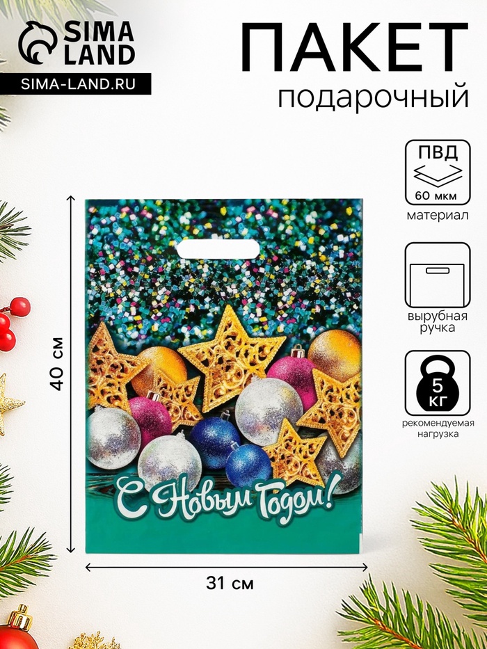 Пакет подарочный новогодний «Стеклярус», полиэтиленовый с вырубной ручкой, 31×40 см