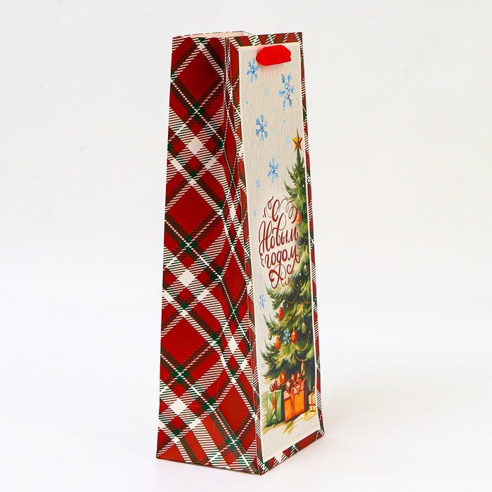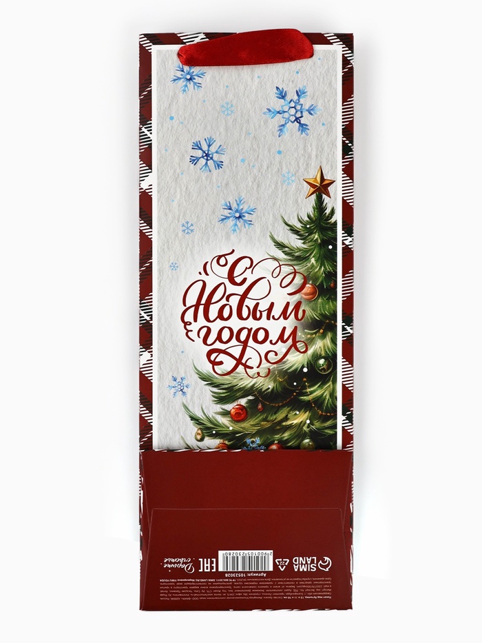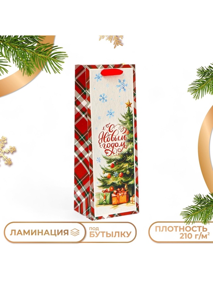 Подарочный пакет новогодний — идеальный выбор для упаковки бутылки.