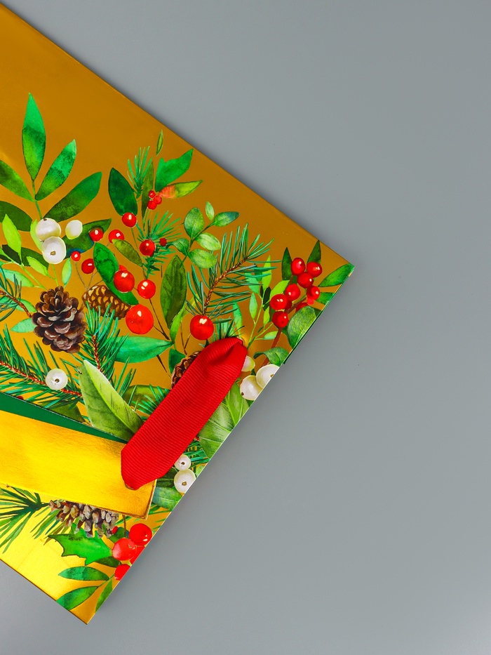 - Такой подарочный пакет станет неотъемлемой частью вашего подарка, дополняя его и делая его еще более особенным. Это не просто упаковка — это возможность создать целую новогоднюю историю, где каждый элемент, включая этот элегантный пакет, играет важную роль в создании праздничного настроения.