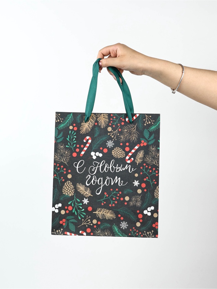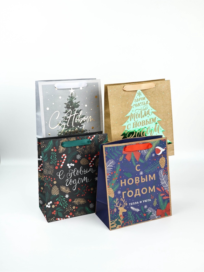 Набор пакетов подарочных новогодних «Еловый лес», 4 шт., 27×23×11.5 см