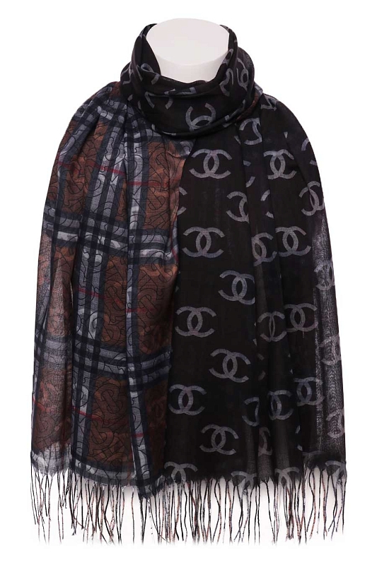 Мягкий, тонкий палантин. Одна сторона - крупная клетка, другая сторона - мелкая клетка. Края палантина заканчиваются кромкой, концы - бахрома.