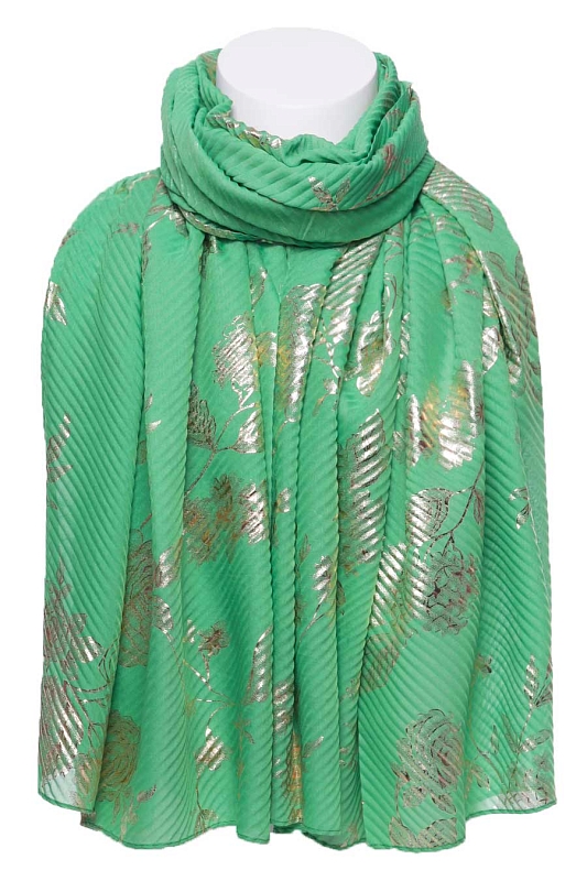 Состав: Вискоза Место: *10П2-3-К1 Тонкий, гофрированный палантин из вискозы с блестящим напылением. Края палантина заканчиваются швом в подрубку. Комментарии к товару