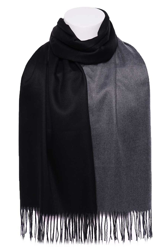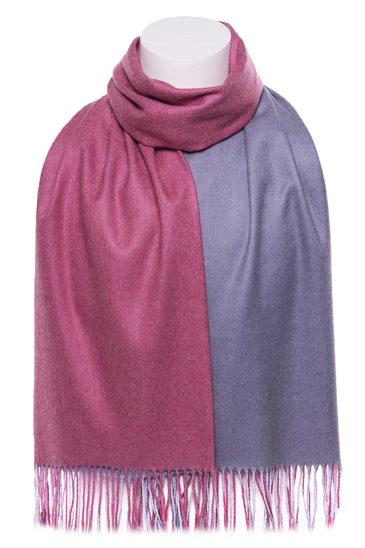 Палантин мягкий, плотный, двухсторонний. Одна сторона - один цвет, другая сторона - другой цвет. На фото показана одна и другая сторона палантина. Края палантина заканчиваются кромкой, концы - бахрома.